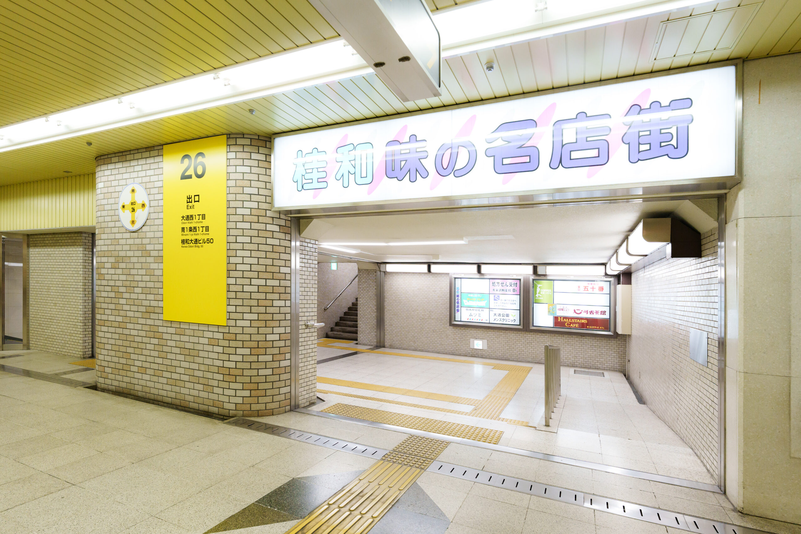 当クリニックがある「桂和大通ビル50」は、大通駅の「26番出口」に直結しているため、外に出ることなくご来院いただけます。雨や雪などの悪天候でも濡れることなく通院できる場所にあるのは、患者さんからも好評です。